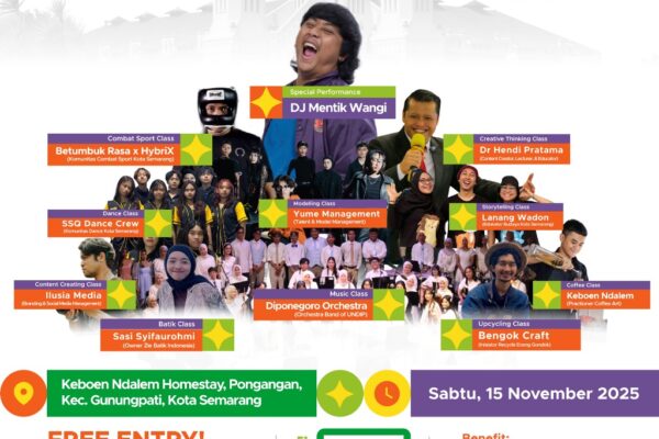 SEMARANG – Pemerintah Kota Semarang melalui Badan Perencanaan Pembangunan Daerah (Bappeda) bekerja sama dengan KNPI Kota Semarang dan program kepemudaan Teladan 2025 akan menggelar kegiatan SPOTLITE X pada Sabtu, 15 November 2025, di Keboen Ndalem Homestay, Pongan, Kecamatan Gunungpati, Kota Semarang. Mengusung tema “Spot the Light, Explore the X”, kegiatan ini dirancang sebagai wadah bagi…